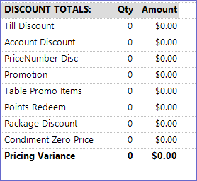 The Discount Totals section displays the Total Value of all the Discounts given during the reporting period along with the total value of each discount type