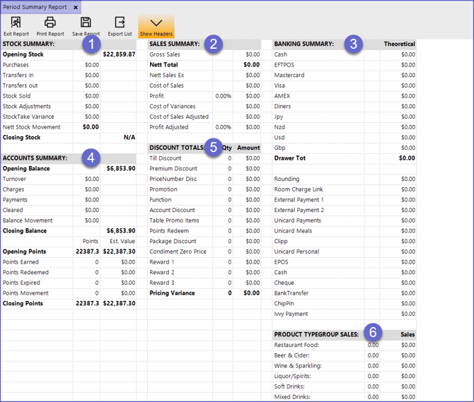 The Period Summary Report is ideally a snapshot of either the entire Venue/s or individual Stores but can be run for a specific Store, Store Group, or for All Stores.