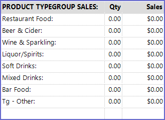 This section displays all the Product TypeGroups that have been added to the system along with the Quantity Sold and the Value of Sales
